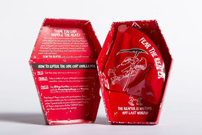 Открыв пакет с чипсами, мы обычно не останавливаемся, пока он не опустеет. Чипсы «Carolina Reaper Madness» нужно есть гораздо медленнее – в пачке находится всего одна штука, но какая! Эти чипсы приправлены экстрактами самых острых перцев в мире: Каролина риппер и Перец-призрак. Соответственно, эти чипсы являются самыми острыми в мире чипсами. Неудивительно, что одной штучки вполне достаточно даже для тех, кто любит погорячее. Чтобы усилить впечатление, пакеты с этими чипсами дополнительно упакованы в бумажные гробики. Продажи самых острых в мире чипсов начнутся 1 октября. Стоимость – 4,99 доллара за упаковку.
