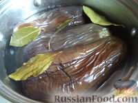 Баклажаны опустить в кипящий рассол на 3-5 минут, а затем сразу же окунуть в ледяную воду.