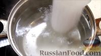 Воду поставить на огонь. Пока не закипела вода, добавить весь сахар.