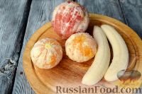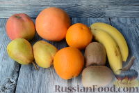 Бананы очистите от кожуры. С грейпфрута и апельсина снимите кожуру и более тщательно очистите цитрусовые от белой части кожуры, так как она горчит.