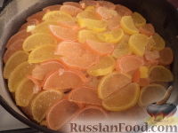 После того как кекс почти испекся, положить сверху слой мармелада.