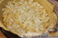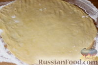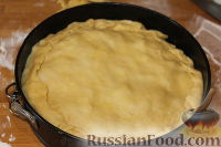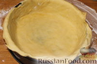 Форму смазать маргарином. Выложить раскатанный пласт теста в форму.