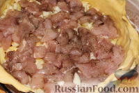 Существует несколько вариантов приготовления курника: с блинами и рисом, с белыми грибами и картофелем, и, традиционно, во всех случаях – с куриным мясом. Куриное мясо кладут в курник в любом виде, это могут быть бедрышки, голени и крылышки, но для семьи я предпочитаю готовить пирог из куриного филе с картофелем на пресном тесте.