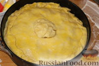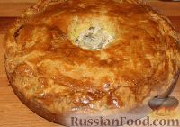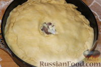 Закрыть отверстие пробкой из теста. Поставить пирог в духовку, предварительно разогретую до 180 градусов.
