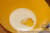 Растопить маргарин в микроволновке и добавить его к яично-молочной смеси.