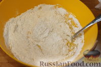 Посолить и хорошо перемешать. Всыпать муку, но не всю, оставить 50 г на раскатывание теста.