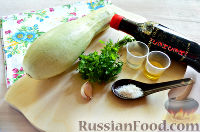 Для закуски из кабачков готовим ингредиенты по списку. Для блюда потребуется молодые кабачки, у которых еще не сформировались окончательно семена. Из кухонной утвари нам понадобится разделочная доска, ножик, миска.