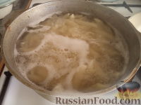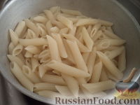 Вскипятить 2,5 л воды. Посолить. Выложить в кипящую воду макароны, перемешать. Варить на среднем огне согласно инструкции на упаковке.