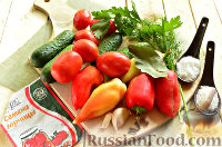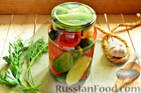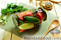 В сезон овощей можно заготовить на зиму пикули со свежей зеленью. Возьмем для овощной заготовки огурцы, помидоры, сладкий болгарский перец. Все овощи должны быть маленького размера, ведь мы будем мариновать их целиком. Для маринада используем семена горчицы, лавровый лист, сахар, соль, столовый уксус и чеснок.