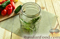 Теперь можно заполнить банки подготовленными мелкими овощами.