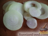 Выложить зрелые, но не мягкие, плоды, сверху — 2 кольца репчатого лука.