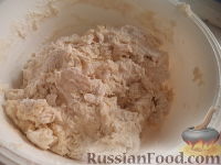 Замесить мягкое тесто руками. Накрыть полотенцем, оставить на 20 минут.