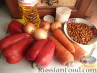 По 1 кг лука, сладкого перца, моркови измельчить.