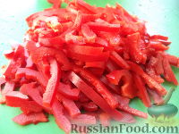 Перец вымыть, очистить от семян, нарезать соломкой или кубиками.