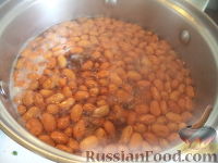 1 кг фасоли промыть, замочить на ночь в холодной воде.