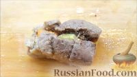 Разрезаем свинину пополам, не дорезая до конца. Затем подрезаем с обеих сторон, грубо говоря, «раскрываем» мясо, слегка нарушая его целостность.