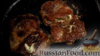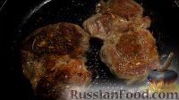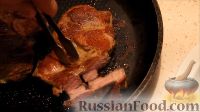И последний раз переворачиваем свиные стейки и смазываем сверху сливочным маслом, чтобы корочка размягчилась. Оставляем стейки из свинины на сковороде еще на 3,5 минуты.