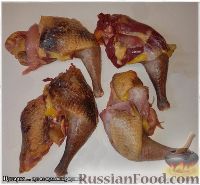 У нас цесарки свои, т.е. сами выращиваем. Поэтому, когда наступает пора, то птичек сразу никак не съесть. Заготавливаем, что называется, впрок. И вообще, цесарка птица довольно своеобразная, целиком ее готовить не особенно интересно. То есть не «готовить», а есть… целиком приготовленную. Хоть она у нас вырастает и с жирком, и с мяском.