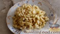 Яблоки помыть, очистить от кожуры и нарезать мелкими кубиками.