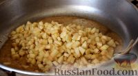 Высыпать яблоки на сковороду и, постоянно помешивая, карамелизировать — яблоки должны приобрести янтарный цвет.
